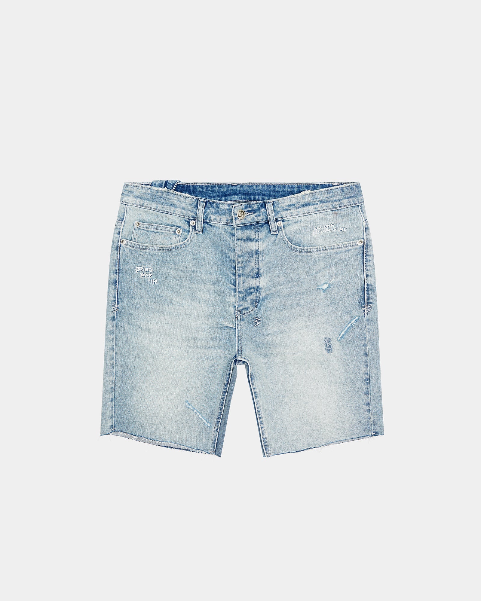 The Chopper Short Authentik is a slim fitting denim short featured in a light stone washed fabric with vintage scaring. This short has a mid rise waist with rip and repair detailing and handwritten text embroidery across the thighs. Finished with the signature 4x4 and t-box embroidery with branded hardware.