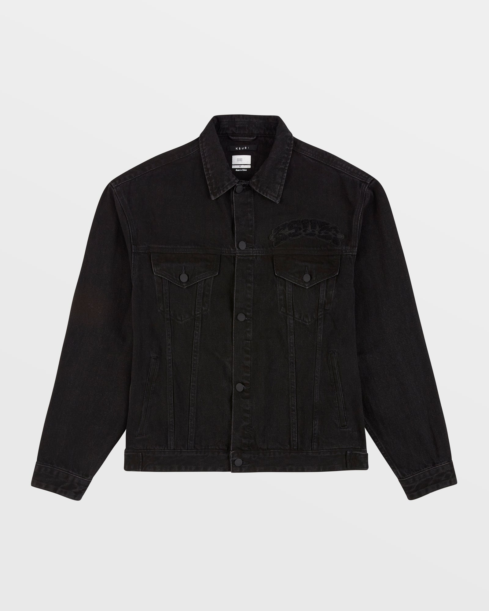 The Oh G Jacket K Patch Ace Black features an oversized fit, front and back branded patches, four pockets, light grinding, back 4x4 cross embroidery, printed t-box and branded hardware. This button through trucker jacket is made from premium rigid denim in black wash and is perfect to pair with the 'Chitch K Patch Ace Black' for a complete look.