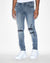 The Van Winkle Hypnotize is skinny fit jeans made from premium comfort stretch denim featured in a mid/dark dusty wash. This style is a mid rise detailed with unique angled belt loops, five pockets, front fly seam, light grinding, multiple decons, trashing, repair stitching and Ksubi branding.