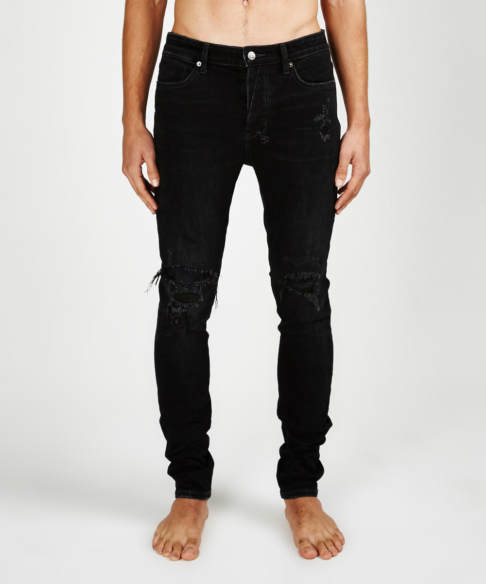 The Van Winkle jean features a shorter rise, and fits skinny from thigh to ankle. These jeans are in premium comfort stretch denim with grazed knees, and feature five pockets, anti-patch detail at the back, and Ksubi cross embroidery.