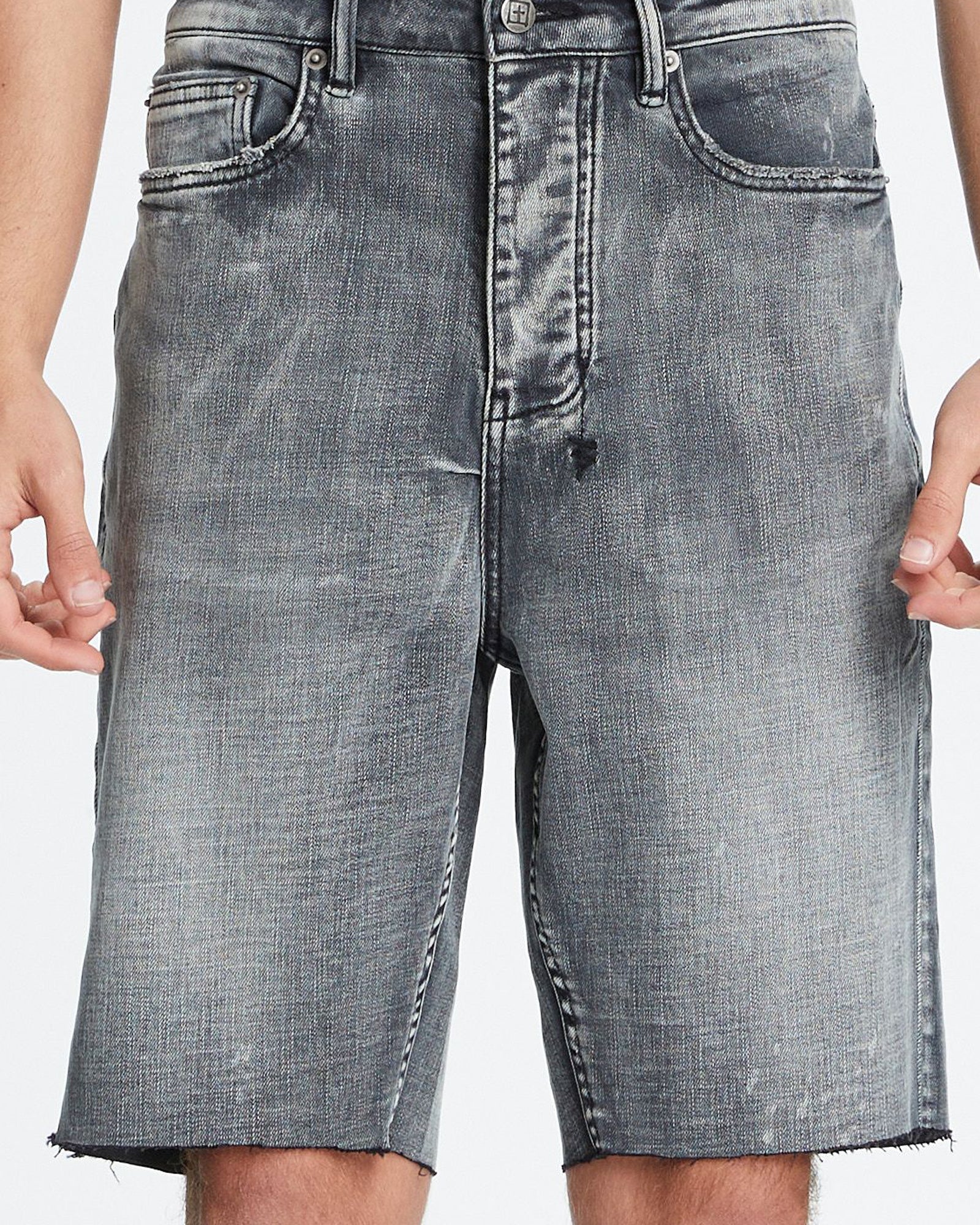 The Wolf Short Hypnotize Trashed is a relaxed fit short with a relaxed tapered leg and a longer rise. Made from a premium European comfort stretch denim in a mid/dark dusty wash, it features a raw hem, light grinding and Ksubi branding.
