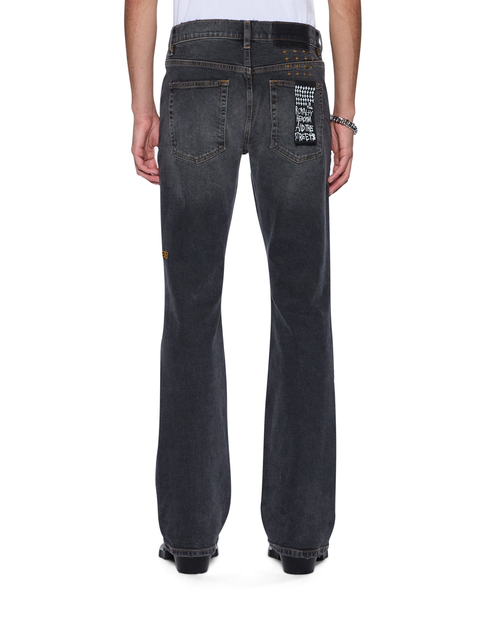 The Bronko Villain Grey is a full length, mid-rise jean made from a rigid black denim. This bootcut jean is a wide leg fit with faded knee details with an embroidered 1999 Ksubi logo. Finished with signature t-box and 4x4 embroidery and Ksubi branded hardware.