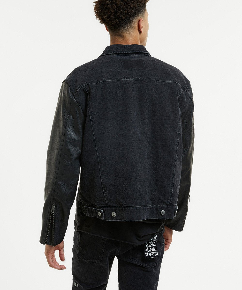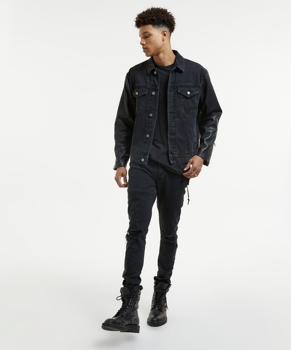 The Oh G Jacket is made from a heavy duty premium European denim in a washed black colourway, and comes with leather sleeves adorned with moto detailing. This jacket is fully lined with quilted wadding, and also features an oversized trucker fit, distressing throughout, branded hardware and signature cross embroidery at the reverse.