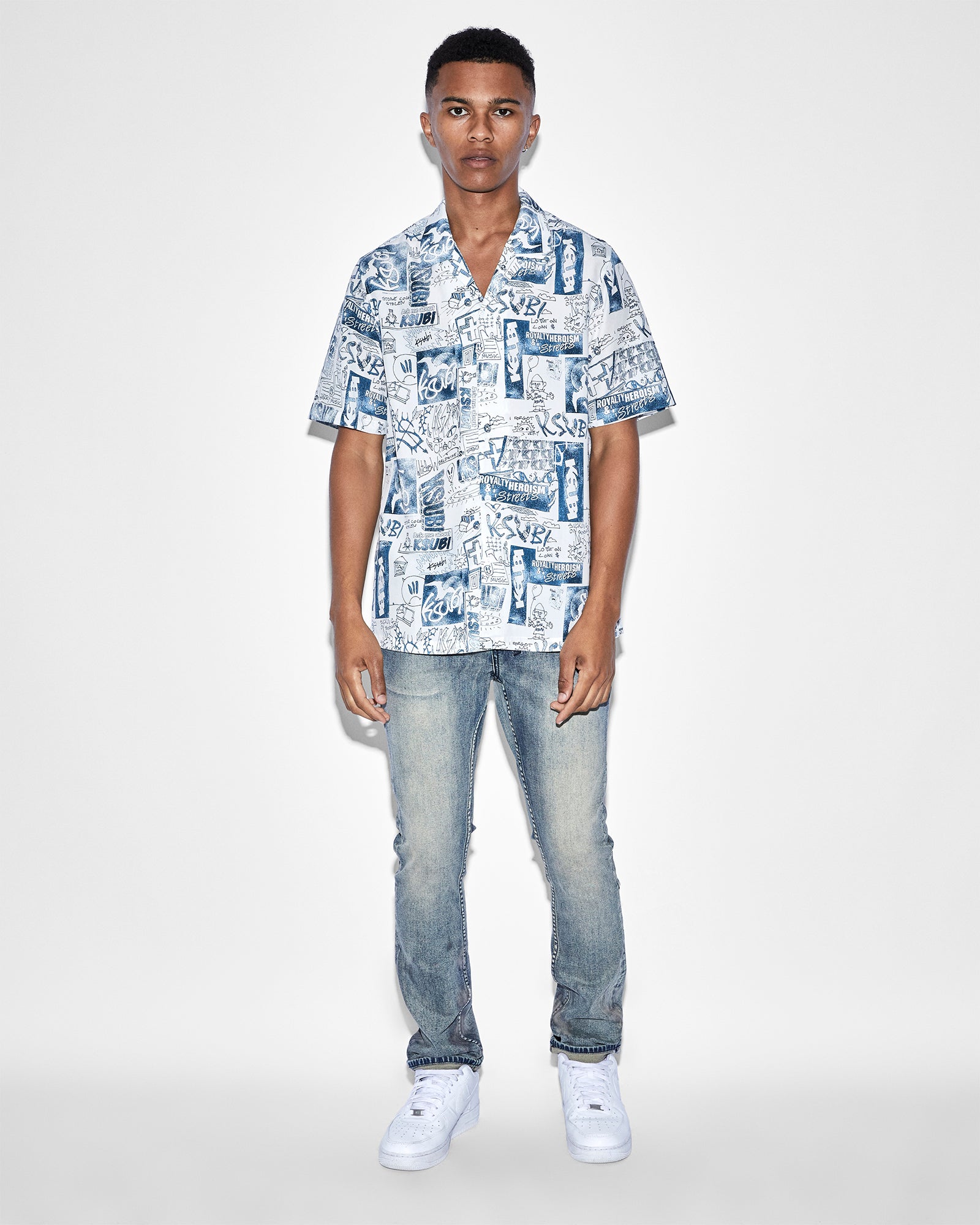 The Mash Up Resort Shirt White is printed with an original artwork and features iconic Ksubi branding details. Made from premium Tencel blend, this short sleeved shirt is designed with a relaxed fit, pressed open collar, front button closure and side seam split.