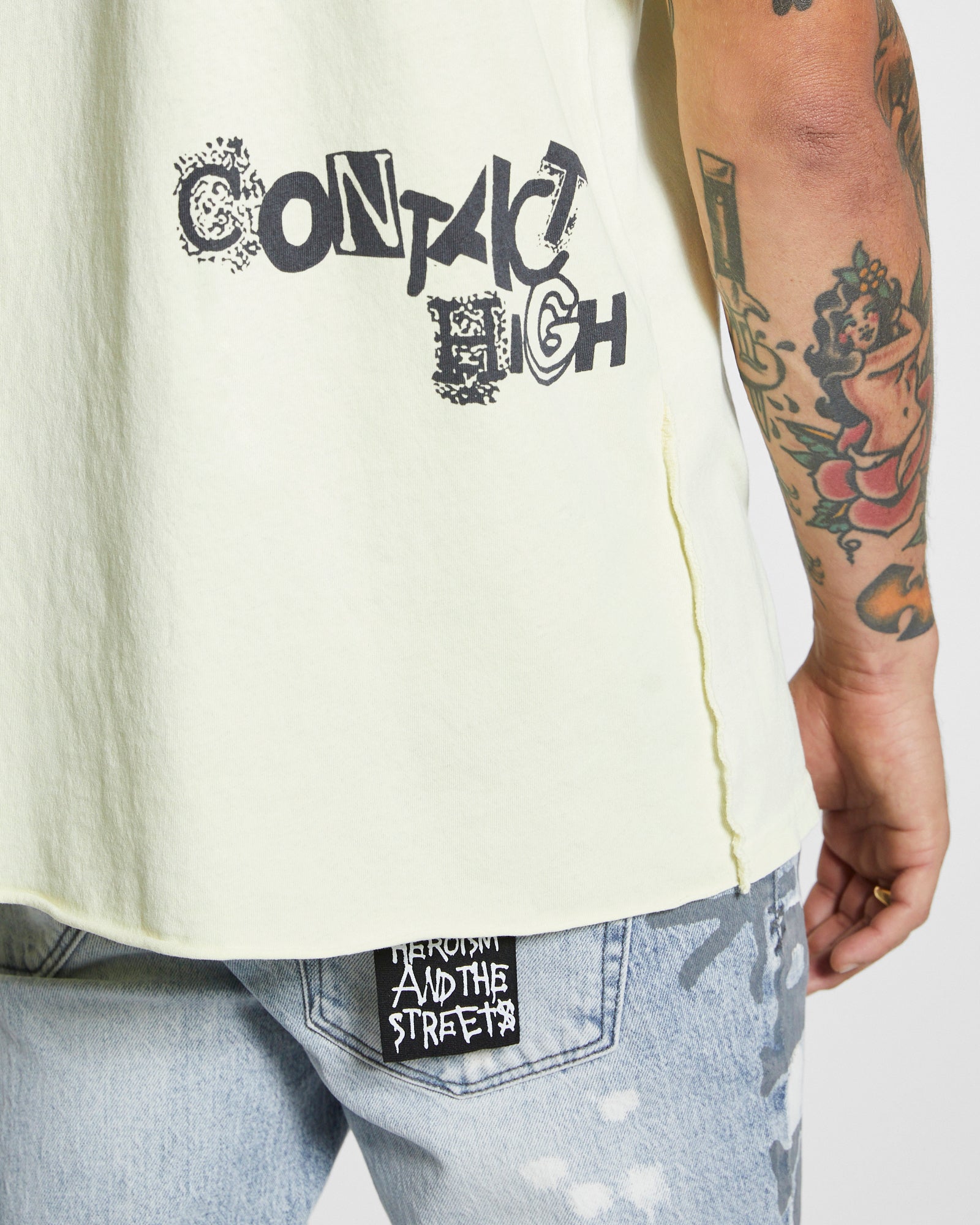 The Turbo Rose Biggie Ss Tee Lemon features front and back original art print, art embroidery and Ksubi t-box print. This short sleeve t-shirt in lemon colourway is made from premium cotton jersey in overdyed colour and aged wash. It is designed with an oversized fit, raw-cut back hem, reverse overlocked side seam and signature rats tail. For colder seasons, put on the 'Turbo Rose Biggie Hoodie Lemon' to wear the same style.