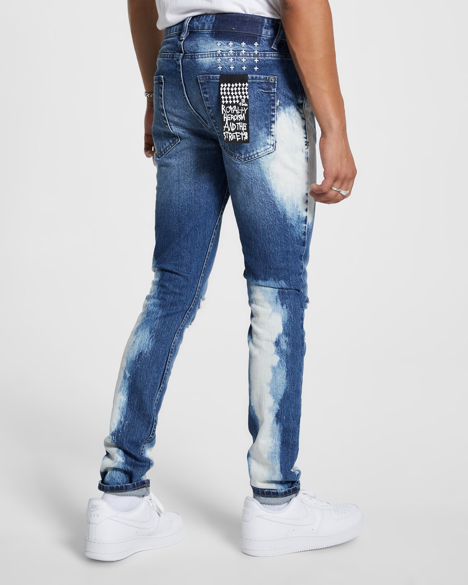 The Van Winkle The Heavens features a skinny fit, mid rise waist, unique angled belt loops, five pockets and front fly seam. It is designed with knee decons, light grinding, back 4x4 cross embroidery, Ksubi t-box print, signature woven pocket flag and branded hardware. This style is made from premium comfort stretch denim in indigo wash with an abstract bleach effect. Due to the unique bleach effect, each garment may vary slightly. Pair with the 'Classic Jacket The Heavens' for a full look.