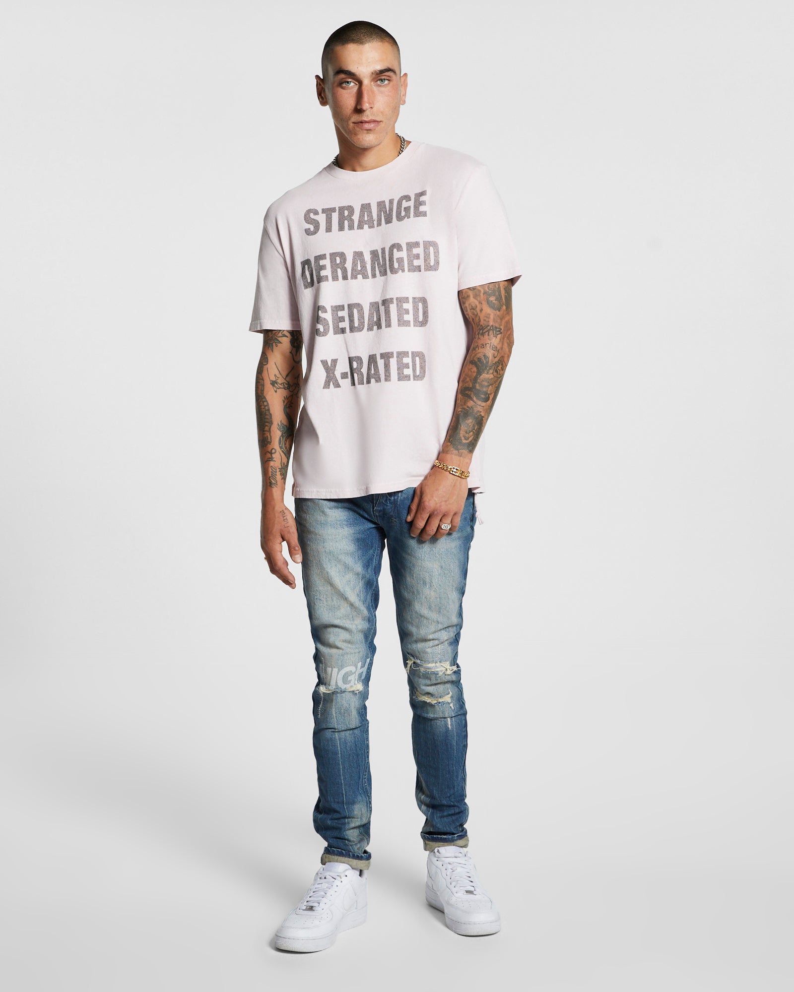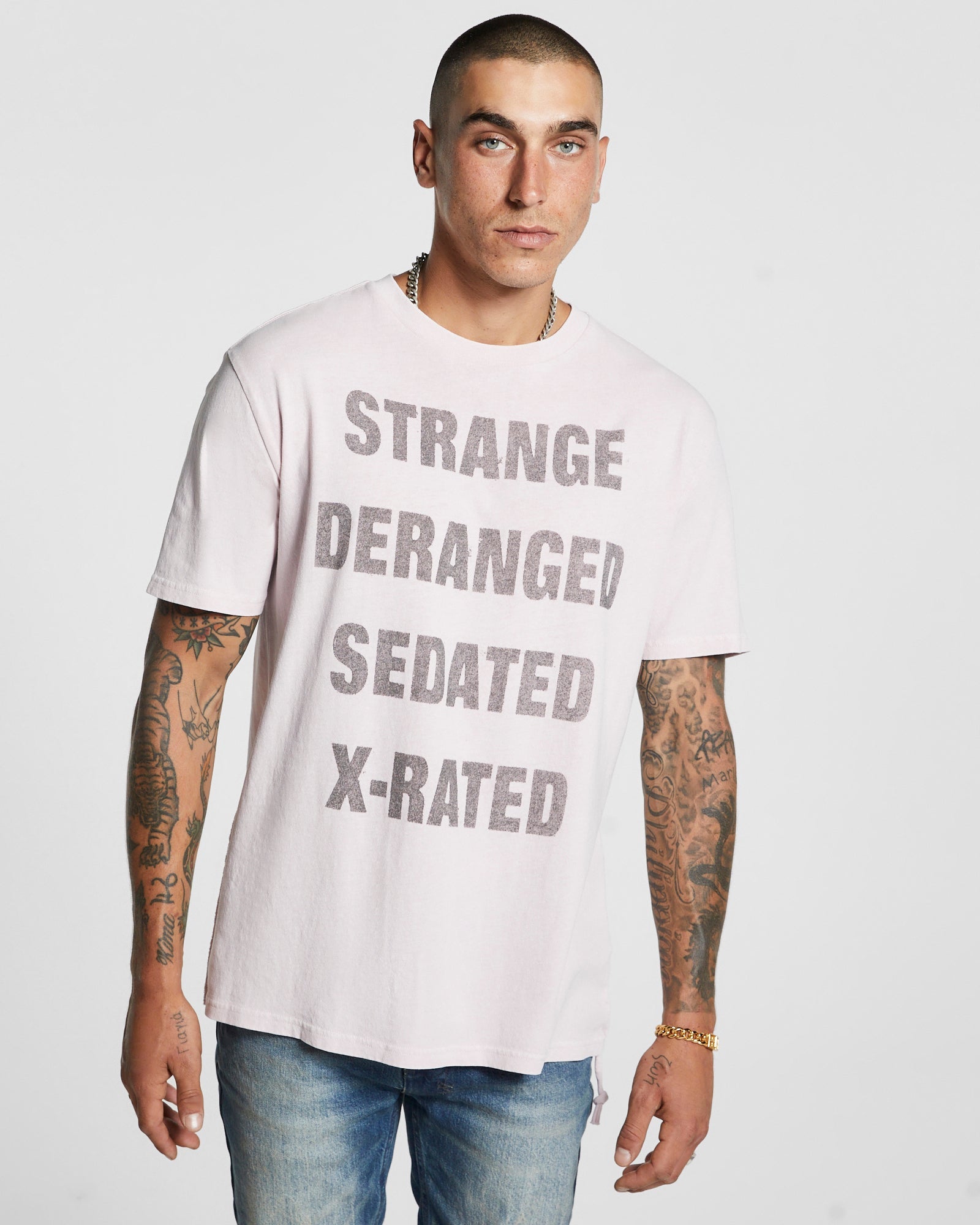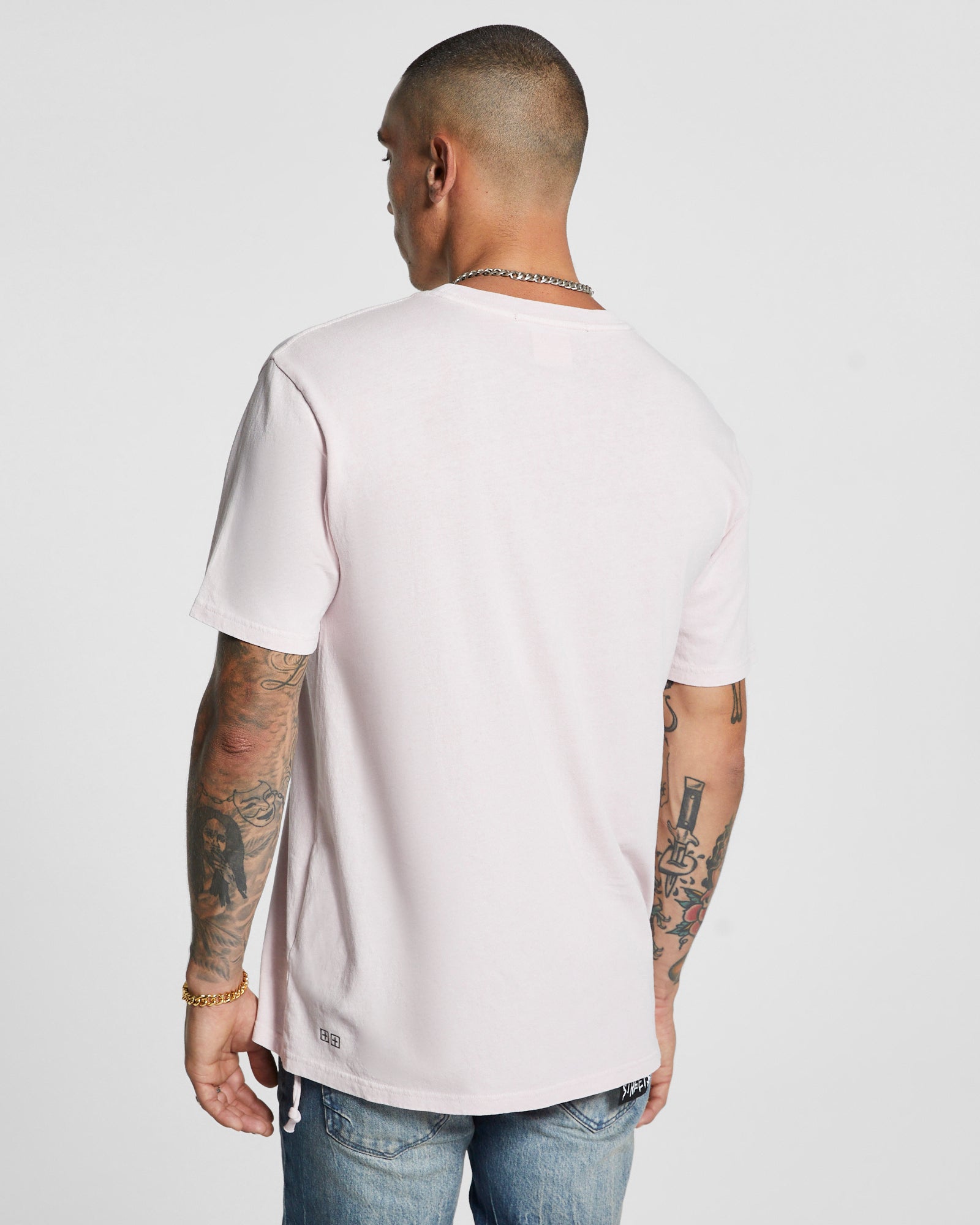 The Xrated Kash Ss Tee Magnolia features a front print, Ksubi t-box print, reverse overlocked side seam detail and signature rats tail. This crew neck t-shirt is made from premium cotton jersey in overdyed colour with aged wash and has a regular fit with short sleeves.