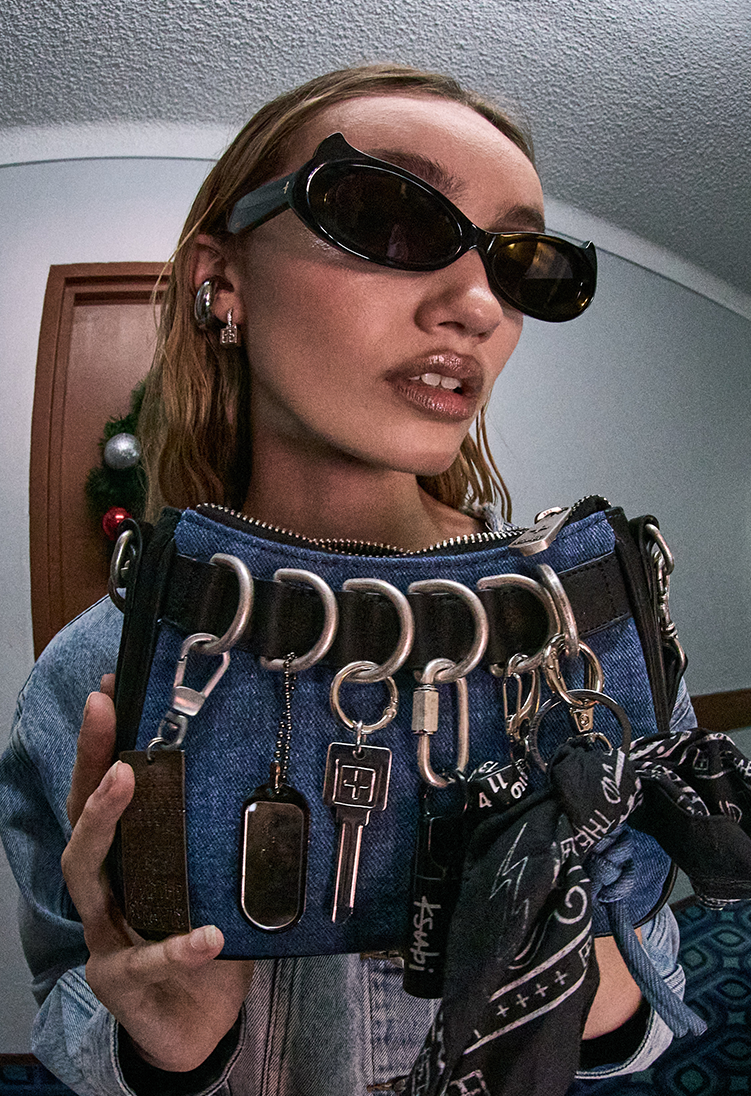 The Baggy Jean Rollin Cut Out is a relaxed wide leg jean with a mid-rise and a detachable shoelace-style belt. Made from premium rigid denim in a soft blue hue, it features thigh rips across the side seams, classic five-pocket styling, anti-silver Ksubi branded hardware.