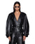 The Barrel Jacket Black is a cropped, collarless jacket featuring barrel-shaped sleeves and a relaxed body silhouette, crafted in India from premium polished napa patent leather with branded lining. Designed with cocoon-shaped sleeves and front trucker-style panelling, the jacket includes chest flap pockets with branded buttons, adjustable cuff tabs, epaulettes, and a belted waist with a heavyweight buckle for a cinched silhouette, finished with Ksubi's anti-silver branded hardware.