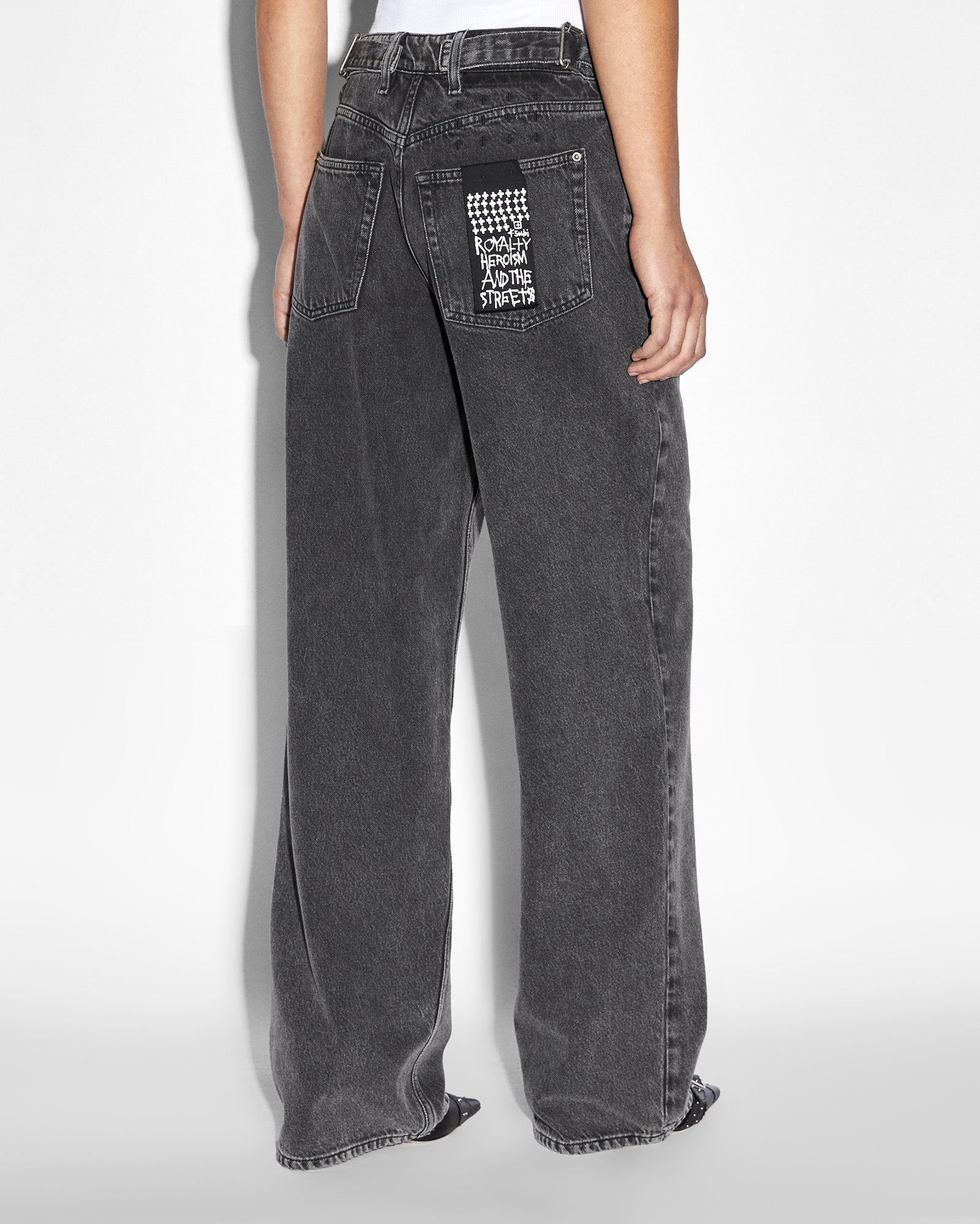 The Low Rider Daze Trip is a relaxed, straight leg jean in a subtle acid washed black denim. This low-rise jean has adjustable waist tabs on both sides to allow for the jean to be worn low rise or tighter to sit higher on the waist. This jean has a removable pocket tag on the right back pocket with Ksubi branding such as the 3x4 and t-box embroidery.