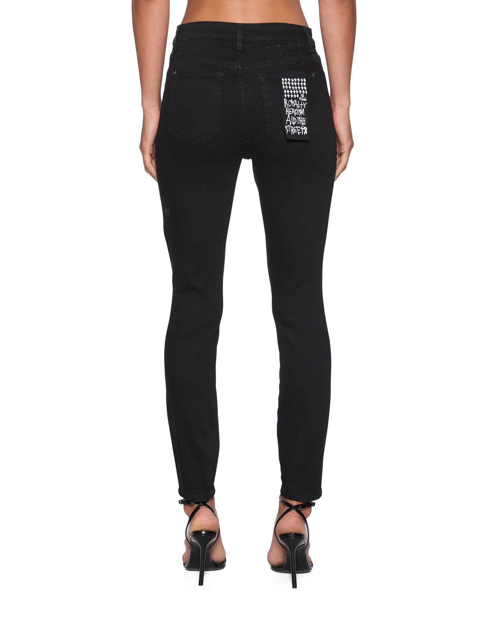 The Spray On Jet Black is a mid rise, super skinny jean made from premium European power stretch denim in a true black colourway with tonal topstitching. This style is designed with five pocket styling featuring a small welt front welt coin pocket, a zip fly and ankle grazing length. Signed off with anti silver branded hardware and Ksubi branding.